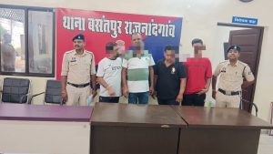 पुलिस अधीक्षक श्री मोहित गर्ग (भा0पु0से0) के कुशल मार्गदर्शन पर श्रीमान अति0 पुलिस अधीक्षक श्री राहुल देव शर्मा एवं नगर पुलिस अधीक्षक श्रीमती वैशाली जैन (भा0पु0से0) के दिशा निर्देश पर निरीक्षक एमन साहू थाना प्रभारी बसंतपुर नेतृत्व में अपराधों पर अंकुश लगाने हेतु लगातार विशेष अभियान संचालित किया जा रहा है। इसी कड़ी में विशेष अभियान के तहत 04 अक्टूबर 2025 को प्रार्थी द्वारा थाना हाजिर आकर बताया की बासपाई पारा में कुछ व्यक्ति आकर गाली गलौज कर रहे है जिस पर थाना बसंतपुर पुलिस द्वारा तत्काल कार्यवाही करते हुए आरोपीगण रवि खेमानी उर्फ रवि पडवा पिता तुलसी दास खेमानी उम्र 41 साल निवासी सिन्धी कालोनी लालबाग थाना बसंतपुर, रोशन वाधवानी पिता स्व0 चीमन दास वाधवानी उम्र 45 साल निवासी जीवन कॉलोनी थाना बसंतपूर, शाहिल वादवानी पिता रोशन वादवानी उम्र 21 साल निवासी जीवन कालोनी थाना बसंतपुर, ऋषभ यादव उर्फ बबलु पिता ताराचन्द यादव उम्र 25 साल निवासी नंदई थाना बसंतपुर इन सभी के विरूद्ध 170/126, 135(2) इस्गाशा तैयार कर माननीय एस0डी0एम न्यायालय राजनांदगांव के समक्ष पेश किया गया। उपरोक्त आरोपीगणों को माननीय न्यायालय से जेल वारंट प्राप्त होने पश्चात जिला जेल राजनांदगांव में दाखिल किया गया। उपरोक्त कार्यवाही में निरीक्षक एमन साहू, उनि. देवादास भारती,उनि नरेश सार्वा, प्र0आर0 दीपक जायसवाल, आरक्षक जामेन्द्र वर्मा, रामचरण साहु, अतहर अली की सराहनीय भूमिका रही।
