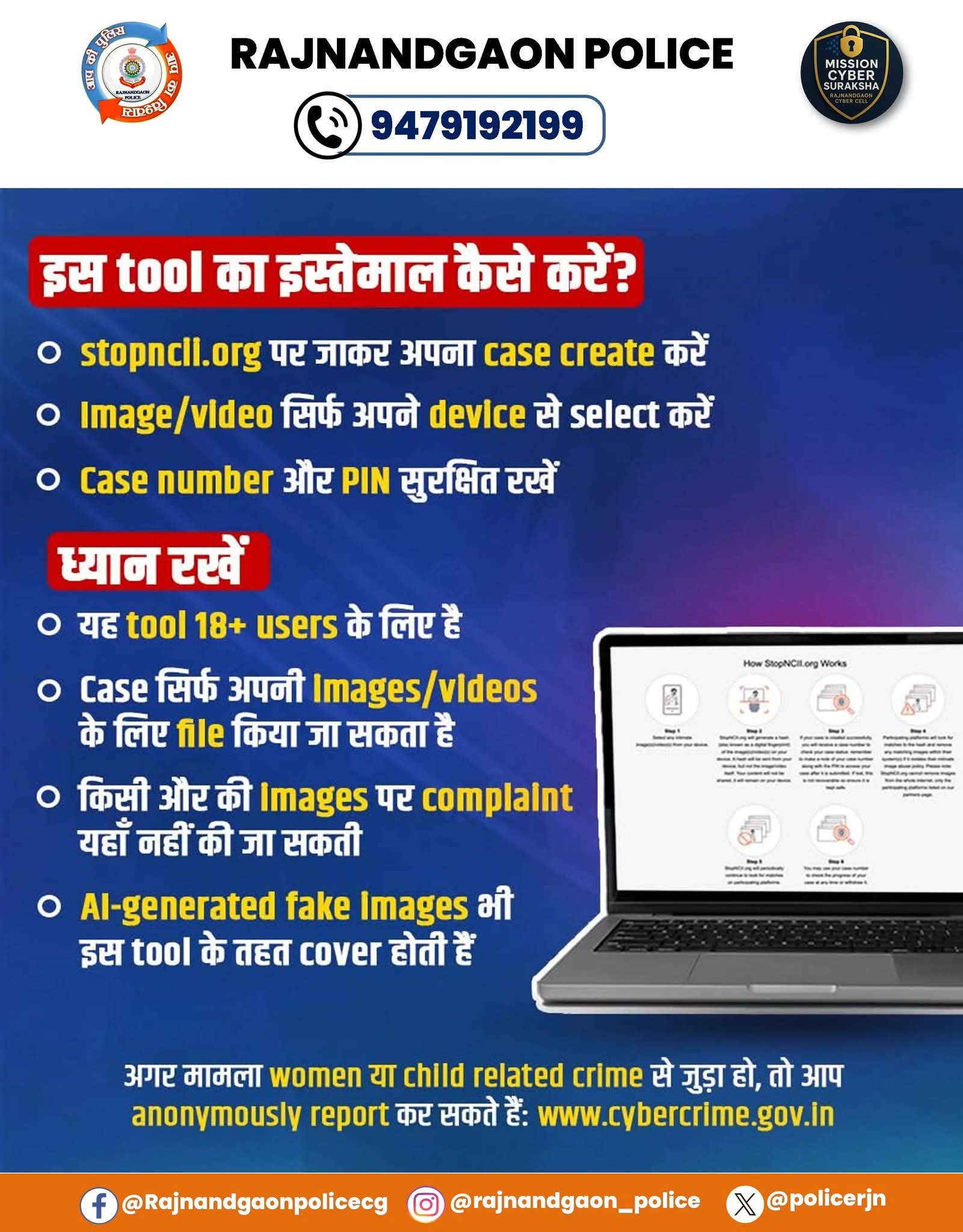 рд░рд╛рдЬрдирд╛рдВрджрдЧрд╛рдВрд╡: рдбрд┐рдЬрд┐рдЯрд▓ рдпреБрдЧ рдореЗрдВ рдмреЭрддреЗ рд╕рд╛рдЗрдмрд░ рдЕрдкрд░рд╛рдзреЛрдВ рдкрд░ рд▓рдЧрд╛рдо рд▓рдЧрд╛рдиреЗ рдХреЗ рд▓рд┐рдП рдкреБрд▓рд┐рд╕ рдЕрдзреАрдХреНрд╖рдХ рд╕реБрд╢реНрд░реА рдЕрдВрдХрд┐рддрд╛ рд╢рд░реНрдорд╛ (рднрд╛.рдкреБ.рд╕реЗ.) рджреНрд╡рд╛рд░рд╛ рдПрдХ рдмреЗрд╣рдж рд╕рд░рд╛рд╣рдиреАрдп рдФрд░ рд╕рдВрд╡реЗрджрдирд╢реАрд▓ рдкрд╣рд▓ рд╢реБрд░реВ рдХреА рдЧрдИ рд╣реИред рдорд╣реЛрджрдпрд╛ рдХреЗ рдиреЗрддреГрддреНрд╡ рдореЗрдВ ‘рдорд┐рд╢рди рд╕рд╛рдЗрдмрд░ рд╕реБрд░рдХреНрд╖рд╛’ рдХреЗ рдорд╛рдзреНрдпрдо рд╕реЗ рдирд╛рдЧрд░рд┐рдХреЛрдВ, рд╡рд┐рд╢реЗрд╖рдХрд░ рдорд╣рд┐рд▓рд╛рдУрдВ рдФрд░ рдпреБрд╡рд╛рдУрдВ рдХреА рдкреНрд░рд╛рдЗрд╡реЗрд╕реА рдХреЛ рд╕реБрд░рдХреНрд╖рд┐рдд рд░рдЦрдиреЗ рдХреЗ рд▓рд┐рдП рдареЛрд╕ рдХрджрдо рдЙрдард╛рдП рдЬрд╛ рд░рд╣реЗ рд╣реИрдВред